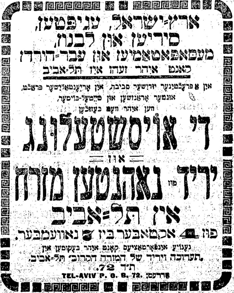 דמיינו לרגע שאתם שחקנים בתיאטרון יידישפיל. עכשיו, חזרו וקראו בקול רם את הידיעה על ׳די אויסטשעלונג׳. כן, בקול חרישי זה גם בסדר. רק להקפיד על המבטא בבקשה.